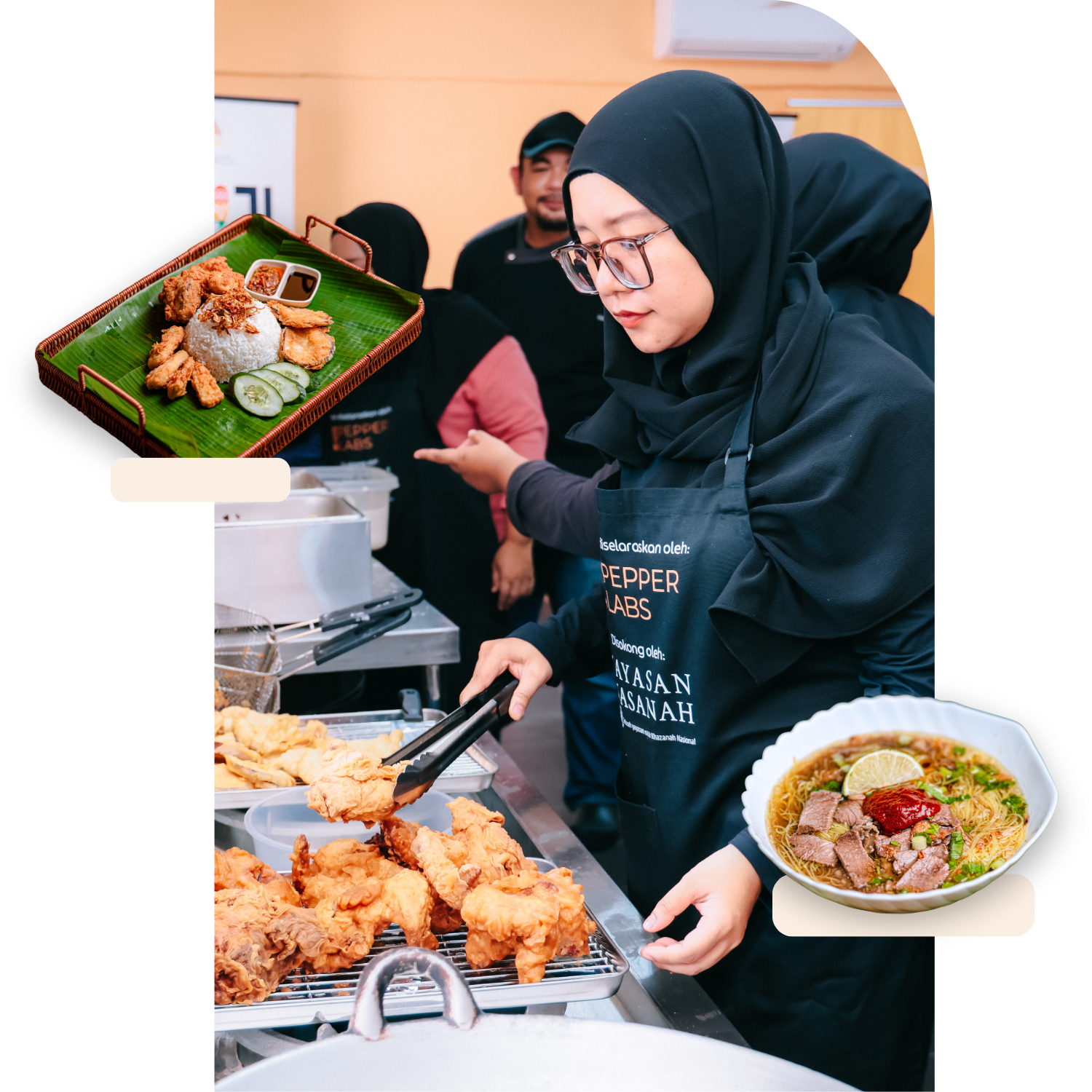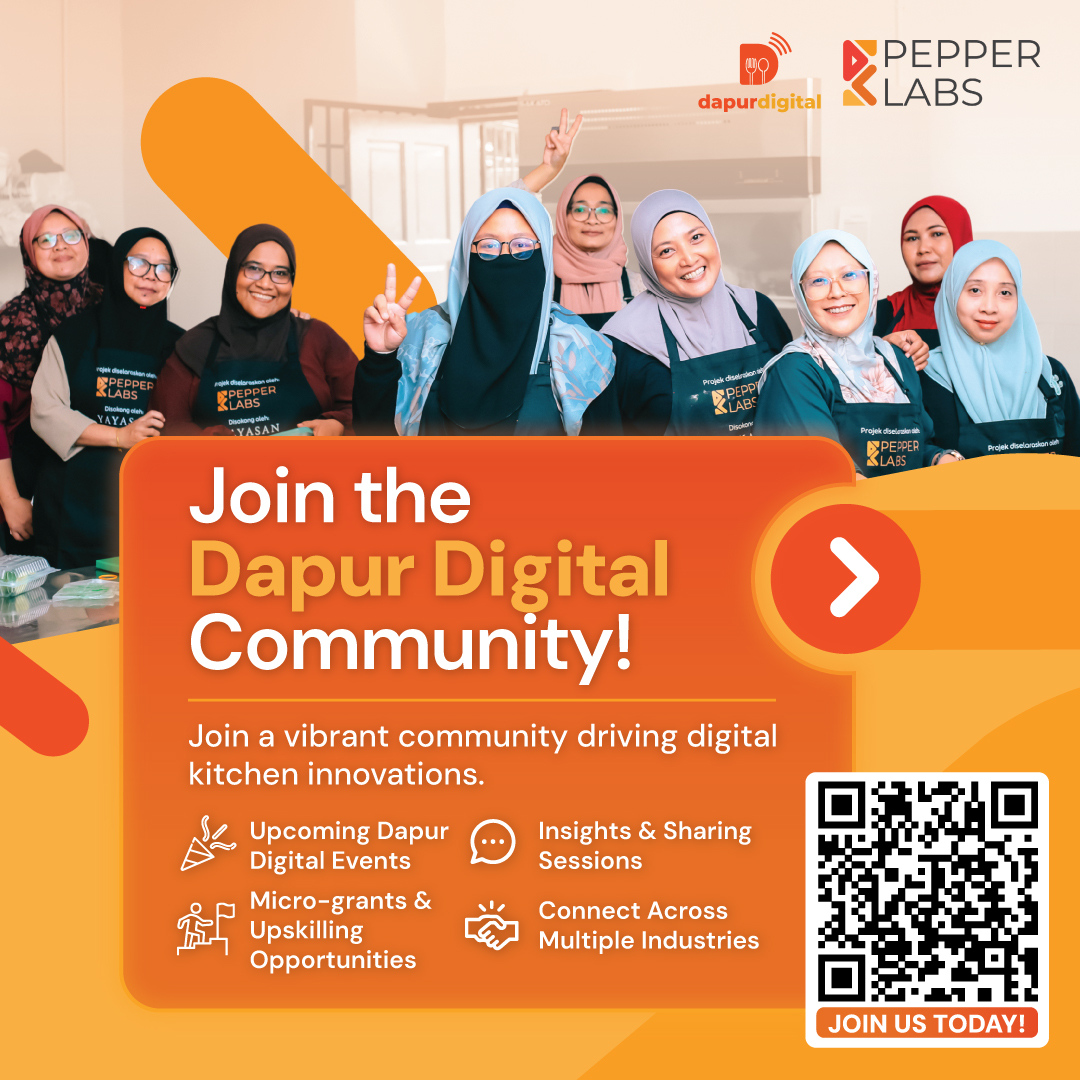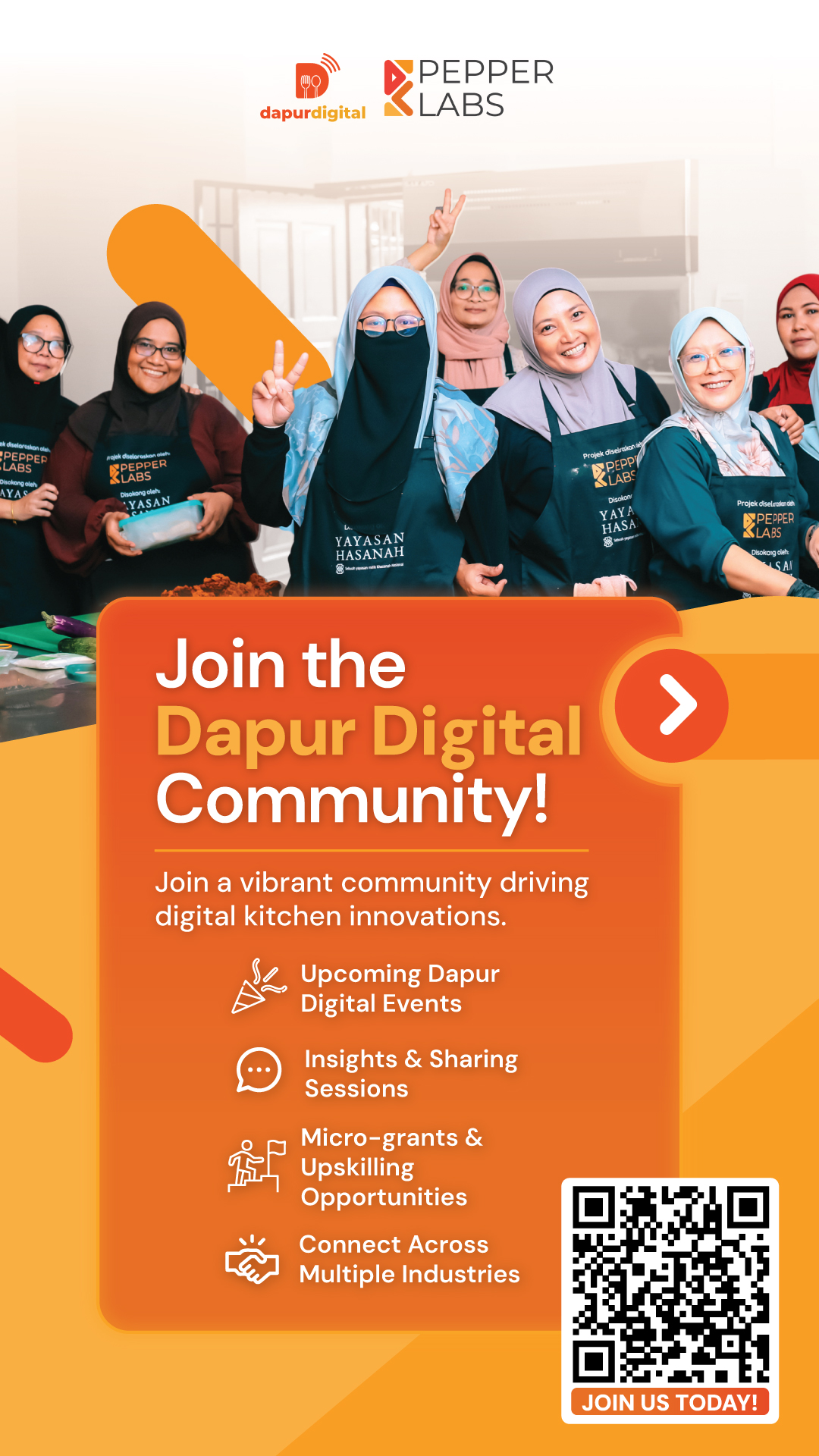 Dapur Digital is a flagship social initiative by Pepper Labs designed to empower B40 micro-entrepreneurs from People Housing Programme (PPR) areas (low-income communities) by providing access to shared kitchen spaces, digital platforms, and essential training. It enables small-scale food vendors to scale their businesses without heavy upfront costs, helping them operate in the digital economy.
